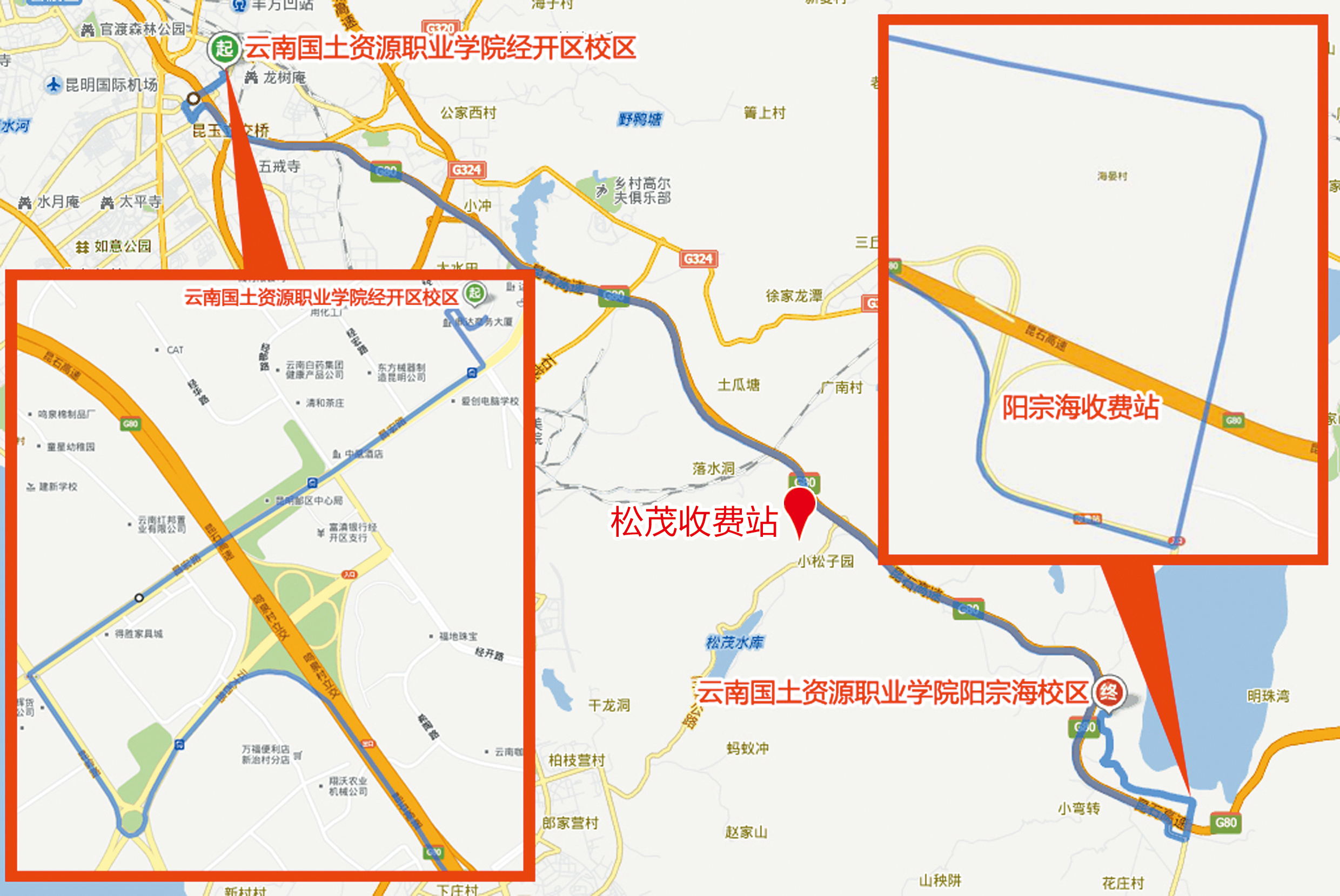 從昆明市區(qū)方向出發(fā):昆石高速至松茂出口下高速,左轉(zhuǎn)進(jìn)入三鋁公路,至陽宗海大道1000米,右轉(zhuǎn)進(jìn)入專用公路即可到校,導(dǎo)航可輸入:玉溪市云南國土資源職業(yè)學(xué)院北門(陽宗海校區(qū))。