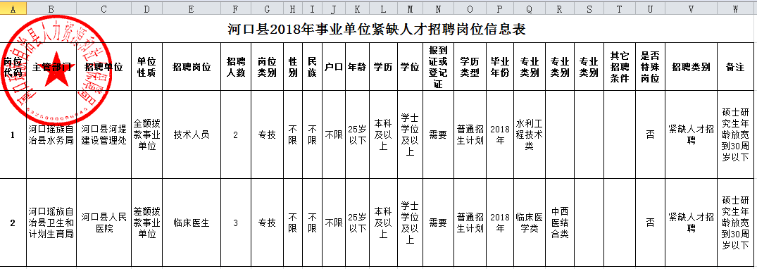 詳見《河口縣2018年事業(yè)單位緊缺人才招聘崗位信息表》