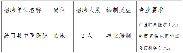 云南省易門縣中醫(yī)醫(yī)院2018年提前招聘編內(nèi)衛(wèi)生專業(yè)技術(shù)人員公告