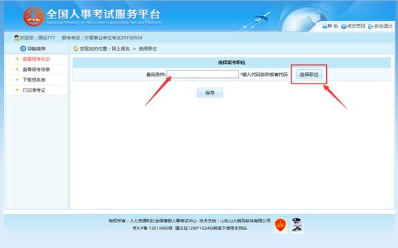 選擇相應(yīng)的職位,點(diǎn)擊“保存”按鈕,提示保存成功,可以跳轉(zhuǎn)到報(bào)考流程頁(yè)面,