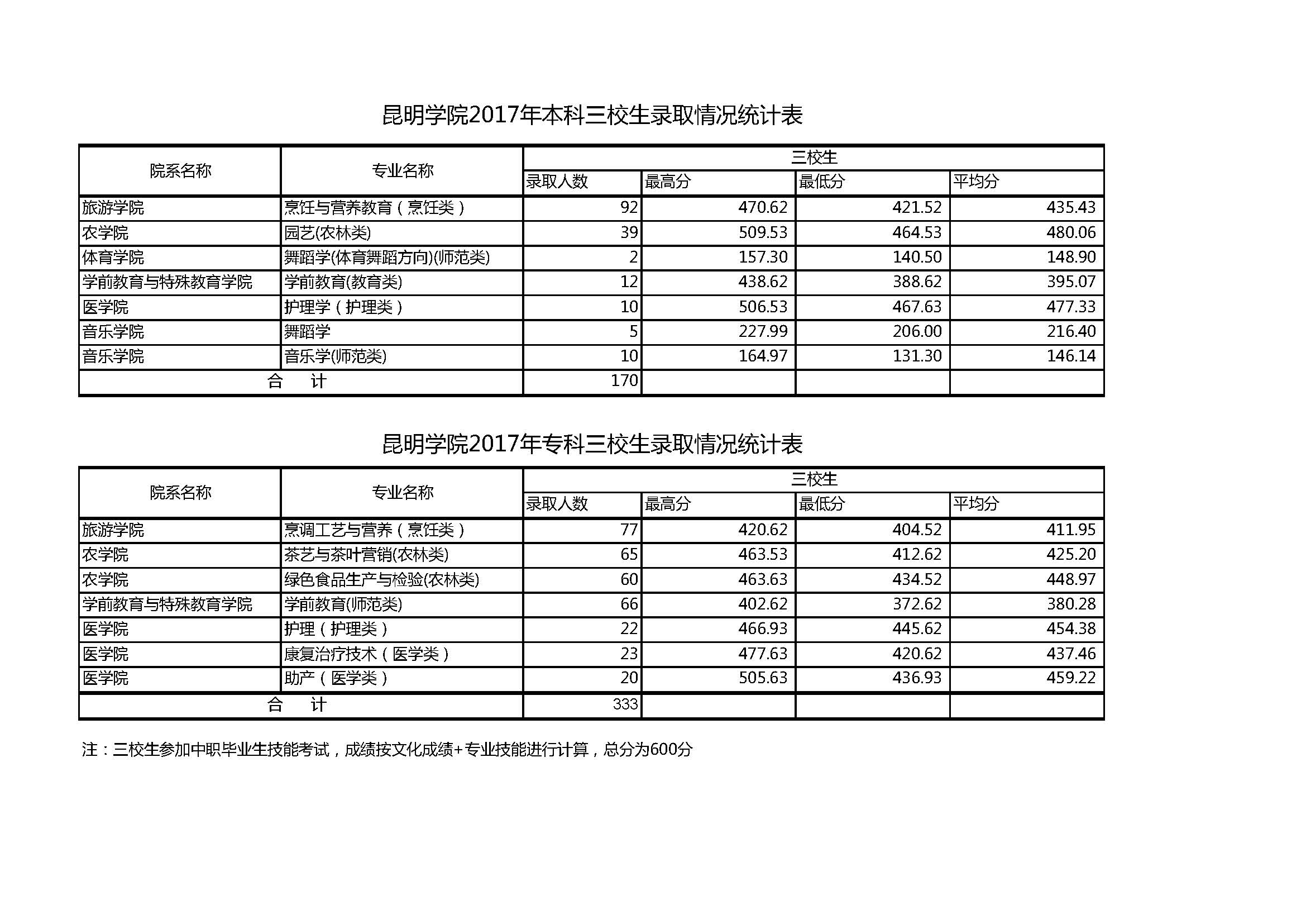 昆明學(xué)院2017年三校生錄取情況統(tǒng)計(jì)表