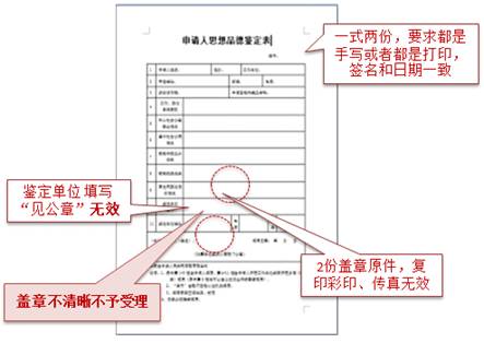 ① 國家機關、事業(yè)單位和國有企業(yè)的工作人員,《申請人思想品德鑒定表》應加蓋單位組織人事部門公章或所屬黨委公章;