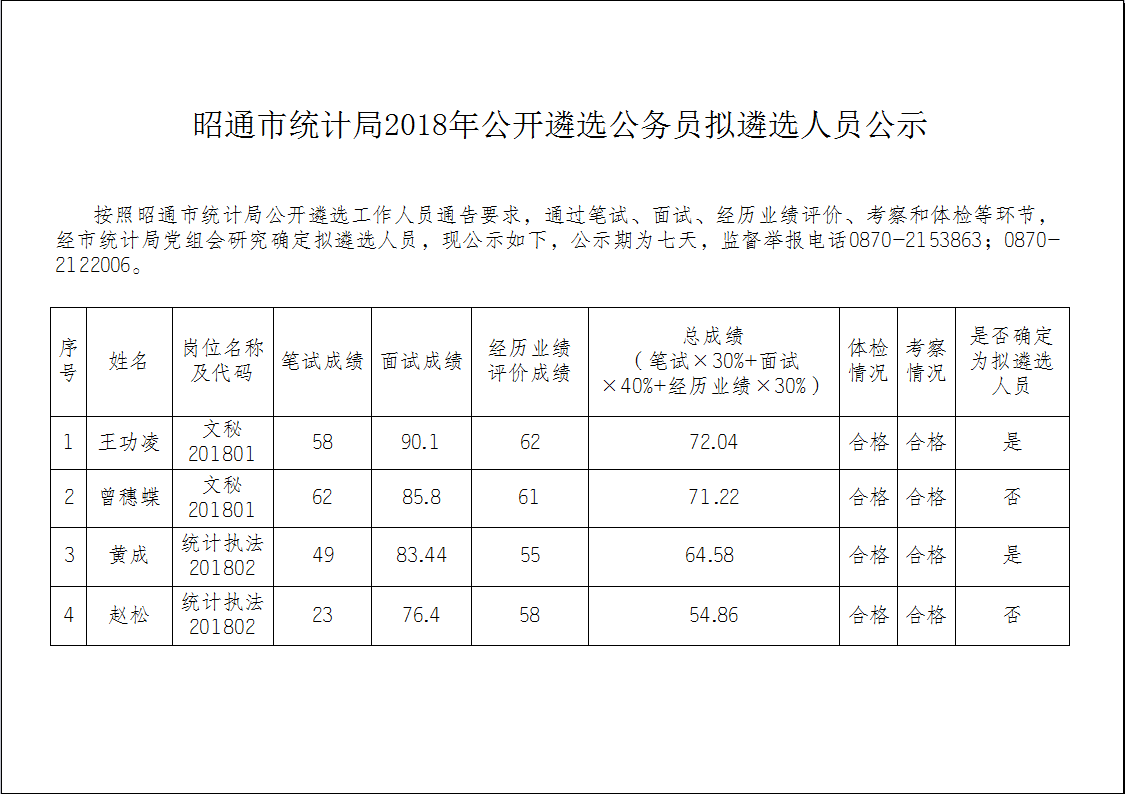 昭通市統(tǒng)計(jì)局2018年公開遴選公務(wù)員擬遴選人員公示