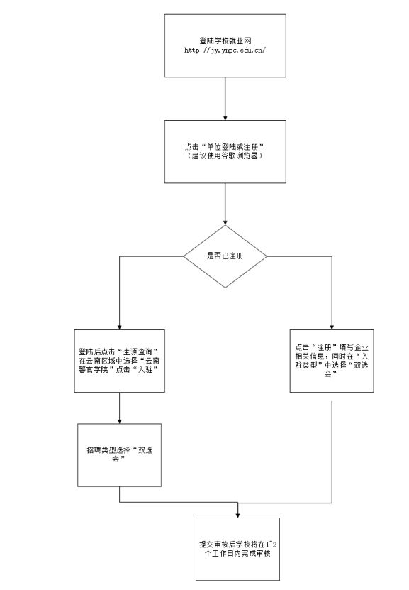 2、請將參會回執(zhí)(加蓋單位公章)、單位簡介、營業(yè)執(zhí)照(或副本)復印件及招聘信息等相關資料以電子郵件或傳真的形式發(fā)送給我們,或通過云南警官學院云就業(yè)平臺進行網上注冊申請(見附件),以便安排展位;