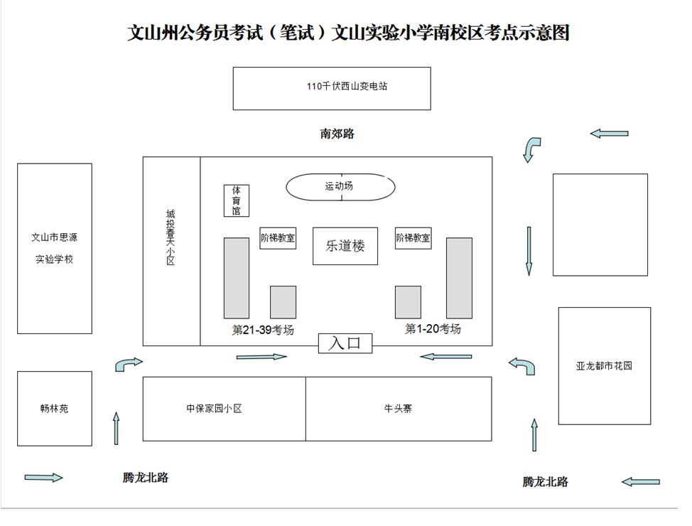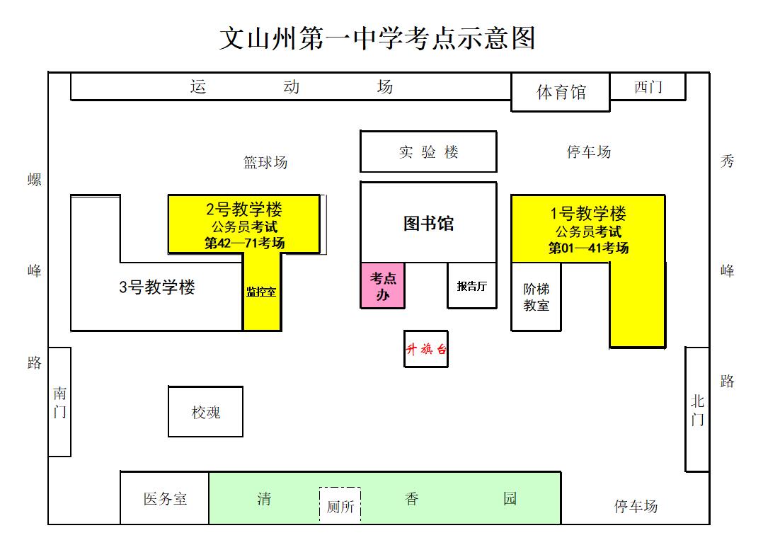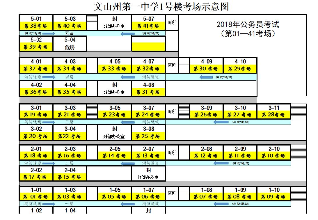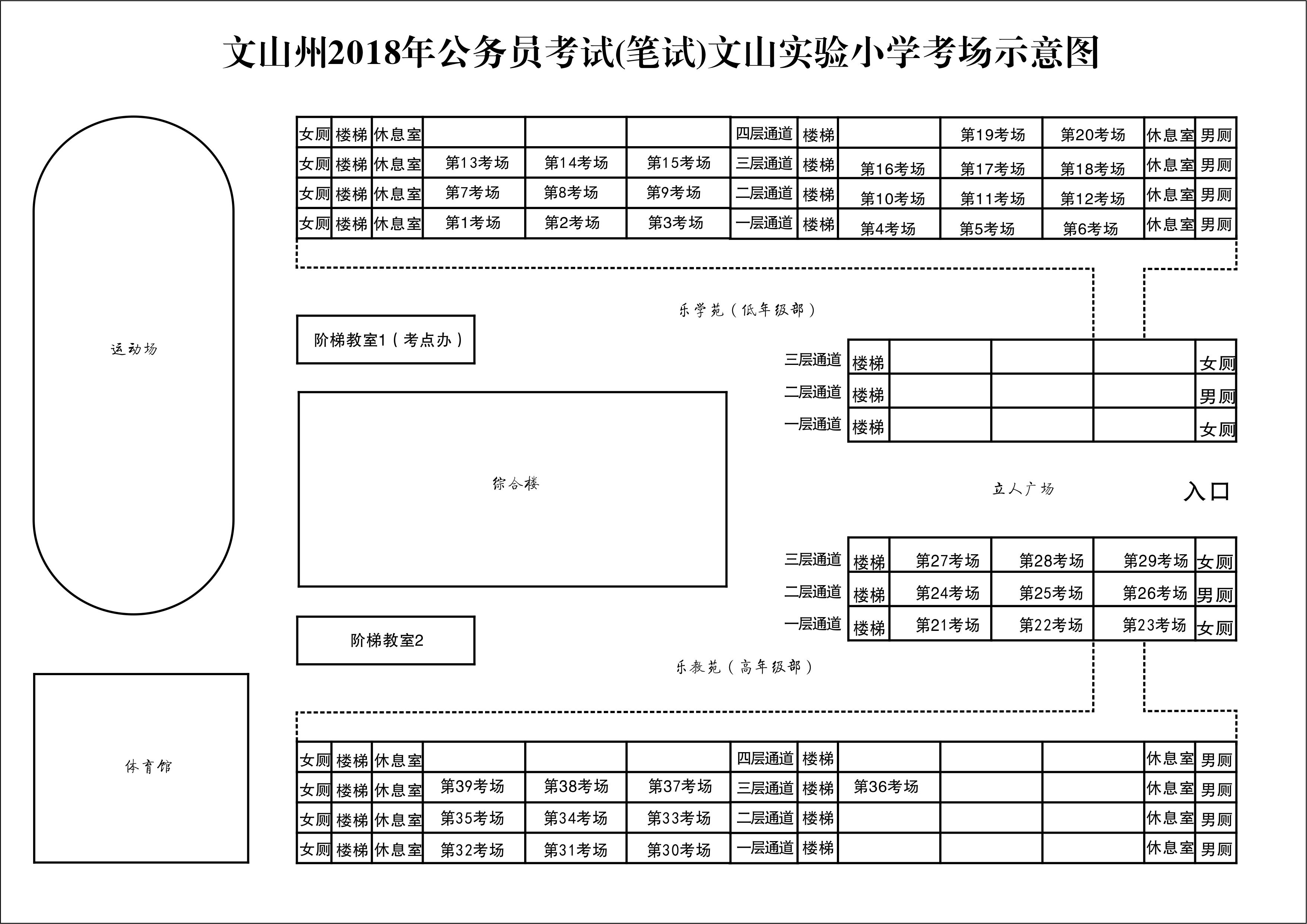 2018年云南省公務(wù)員考錄文山考區(qū)筆試各考點(diǎn)考場示意圖