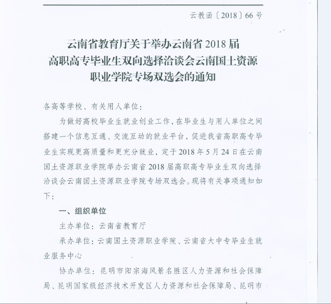 云南省教育廳關(guān)于舉辦云南省2018屆高職高專國土資源類畢業(yè)生雙向選擇洽談會的通知_正文.pdf