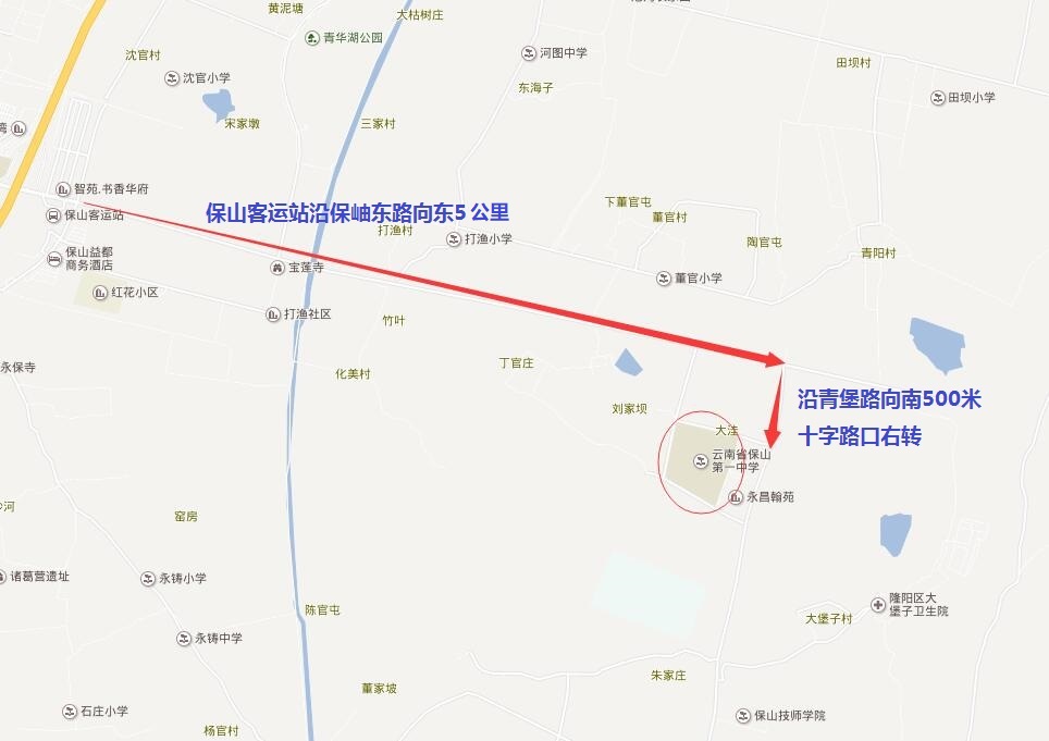 (1)途經(jīng)道路:隆陽路、永昌路、保岫路、青堡路;
