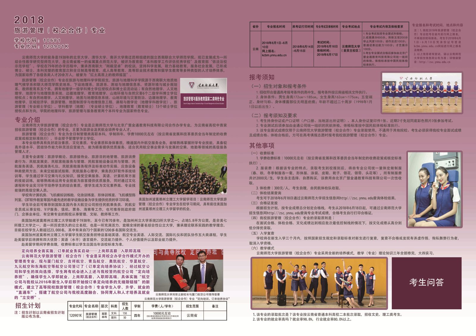 云南師范大學(xué)2018年旅游管理(校企合作)專業(yè)招生簡(jiǎn)章