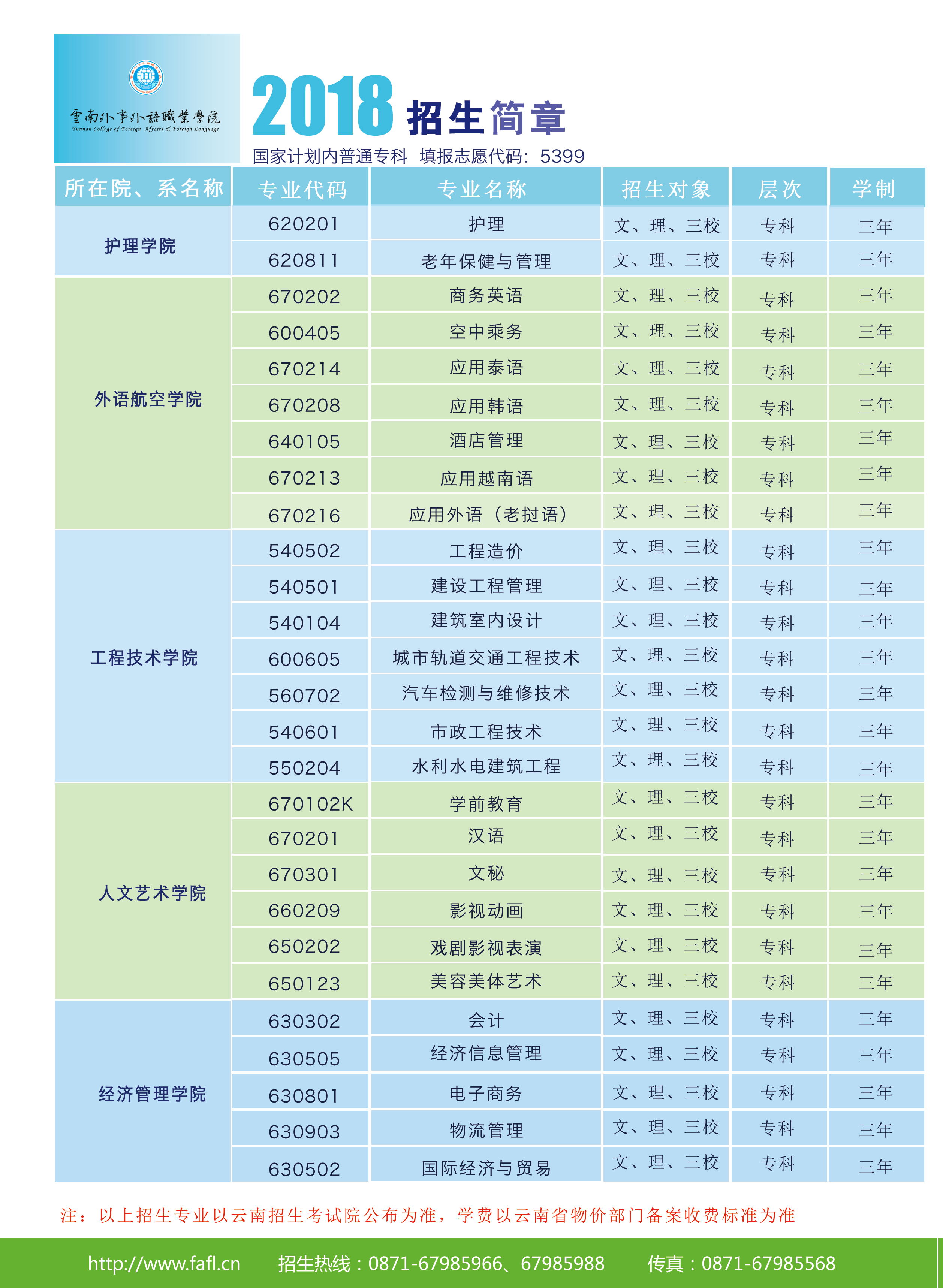 2018年云南外事外語職業(yè)學(xué)院招生簡章