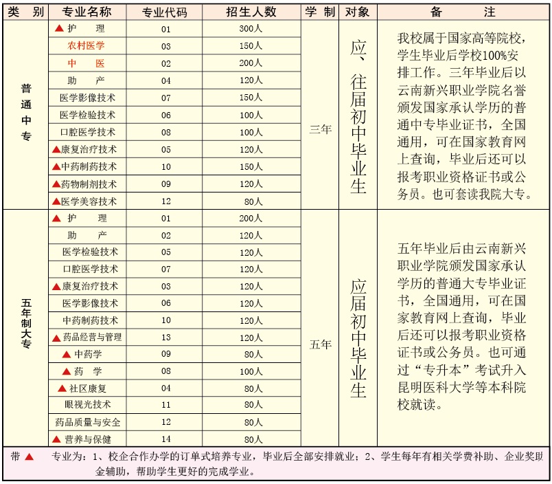 云南新興職業(yè)學(xué)院2018年五年制大專、三年制中專招生計(jì)劃