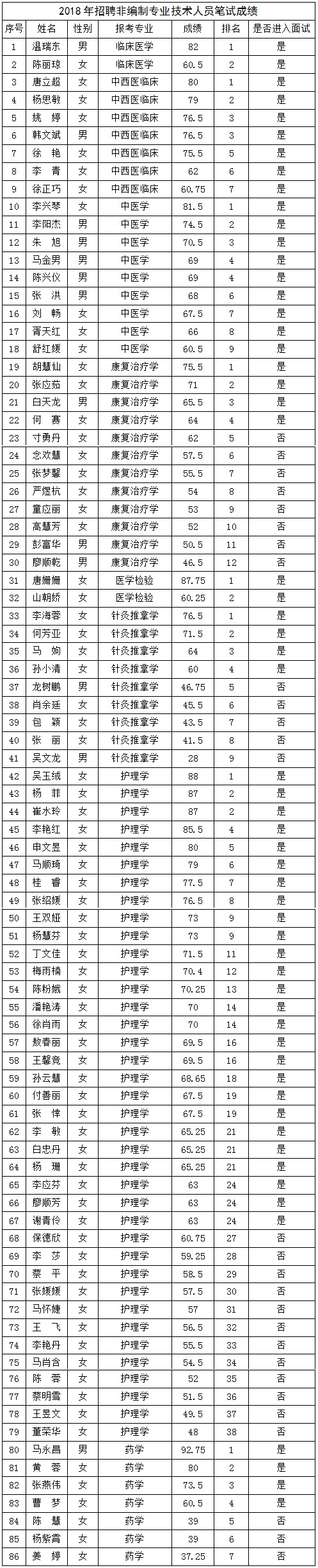 尋甸縣中醫(yī)醫(yī)院2018年招聘非編制專業(yè)技術(shù)人員筆試成績公示