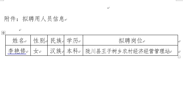 根據(jù)《德宏州軍人隨軍家屬就業(yè)安置實(shí)施細(xì)則》和《2017年德宏州公開考試定向招聘軍人隨軍家屬公告》,隴川縣王子樹鄉(xiāng)農(nóng)村經(jīng)濟(jì)經(jīng)營(yíng)管理站李艷修孕期已結(jié)束,經(jīng)筆試、體檢合格,現(xiàn)予以公示,公示期為7個(gè)工作日,即2018年6月4日至聘用時(shí)間為2018年6月12日(節(jié)假日順延)。
