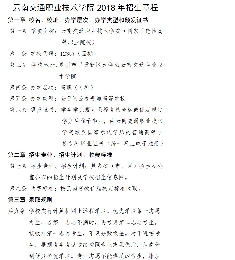 云南交通職業(yè)技術(shù)學(xué)院2018年招生章程