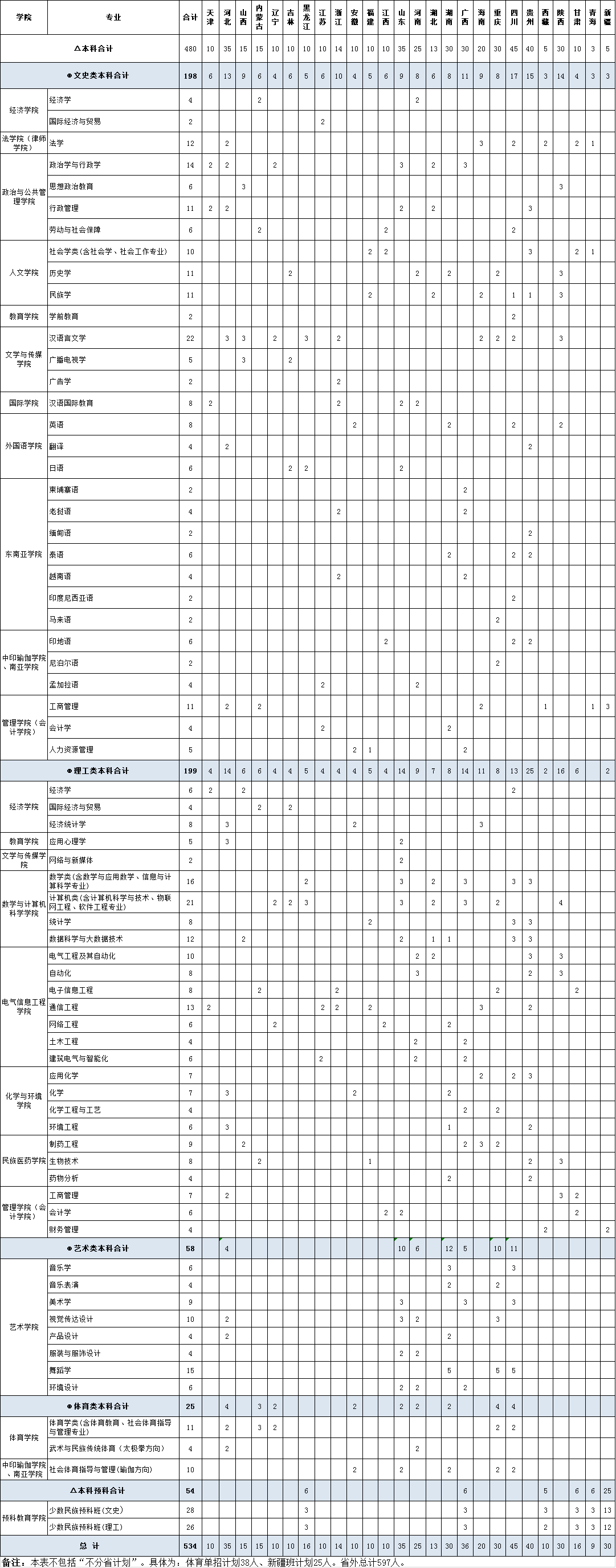 2018年省外普高招生計劃
