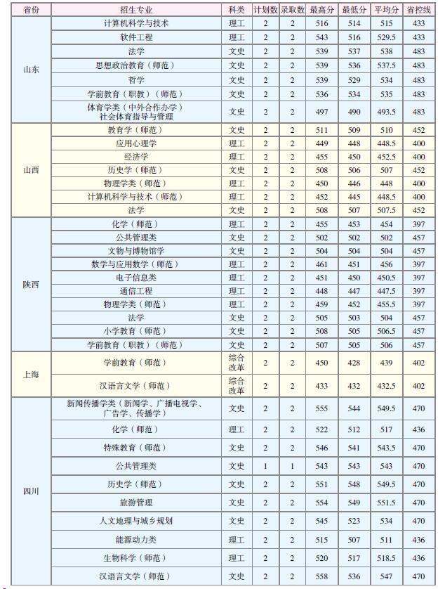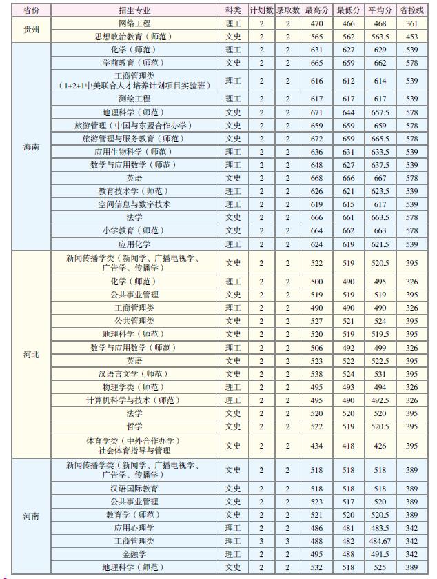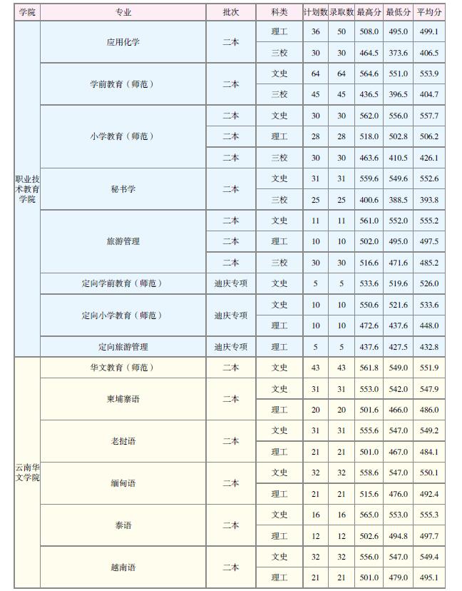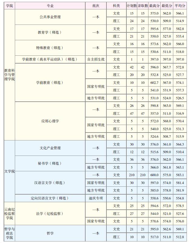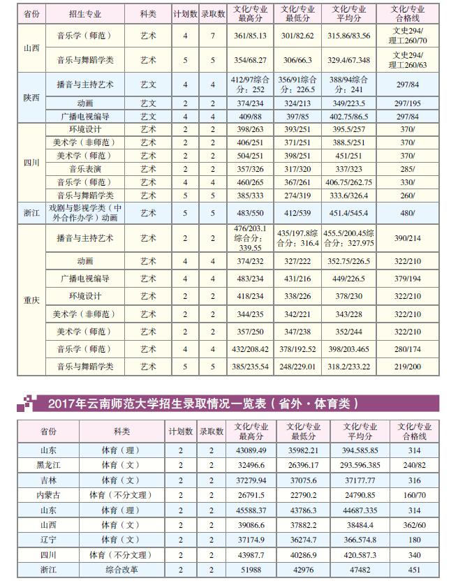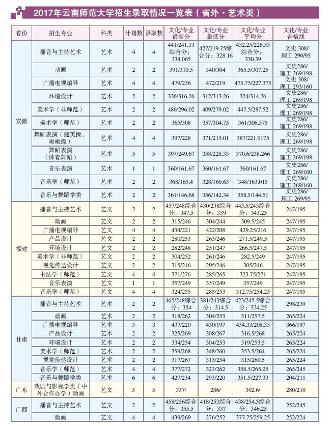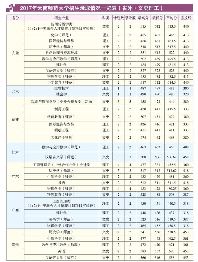 2017年云南師范大學(xué)招生錄取情況一覽表(云南?。?nbsp;