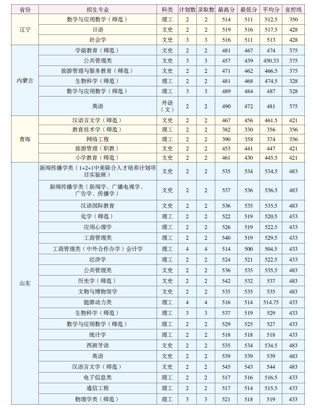 2017年云南師范大學(xué)招生錄取情況一覽表
