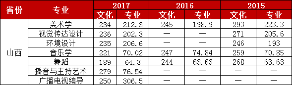 藝術(shù)類近三年錄取專業(yè)最低分情況
