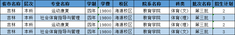 注:2018年,我校首次在吉林省投放體育類招生計(jì)劃。招收體育類統(tǒng)考成績(jī)上線的考生。