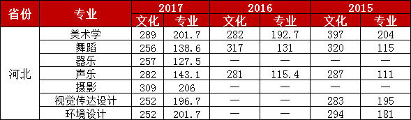 藝術(shù)類近三年錄取專業(yè)最低分情況