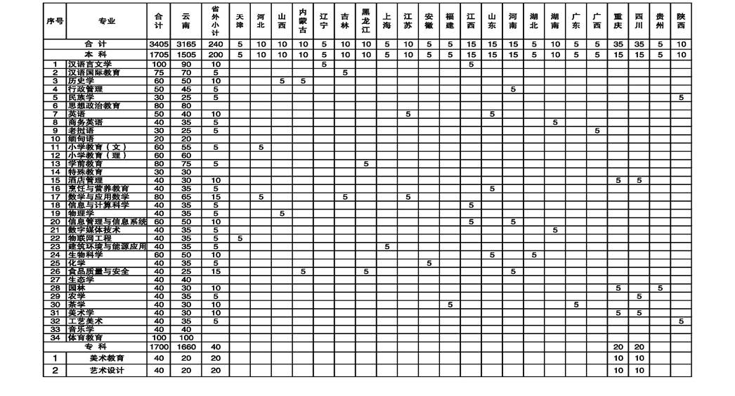 普洱學(xué)院2018年??普猩鷮I(yè)