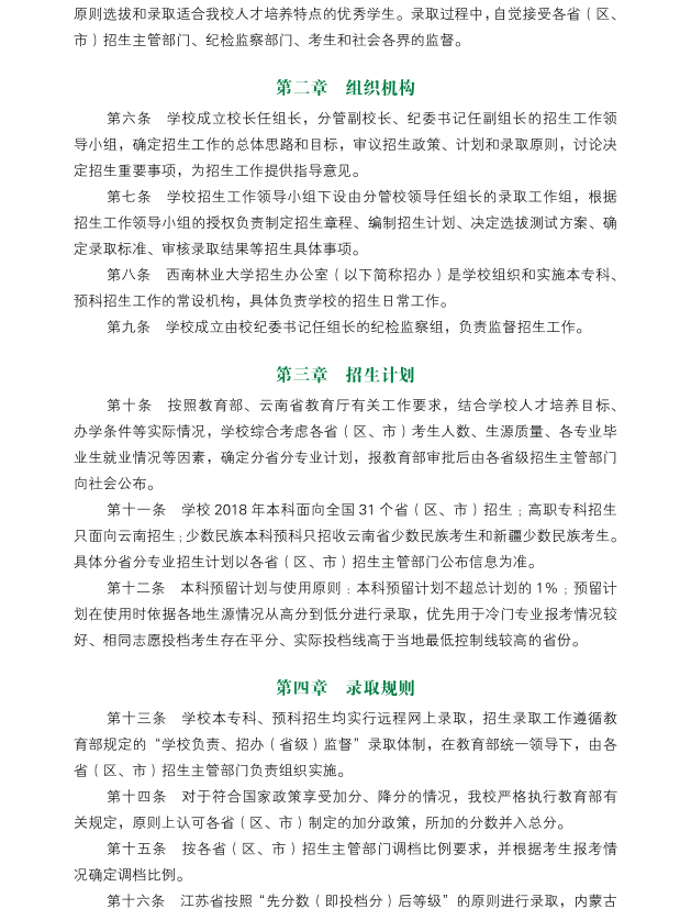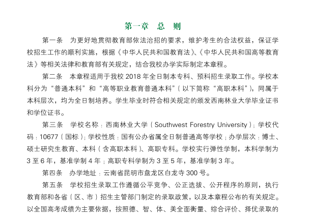 西南林業(yè)大學(xué)2018年本專科招生章程