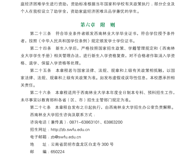 2025年西南林業(yè)大學(xué)普通本科招生章程