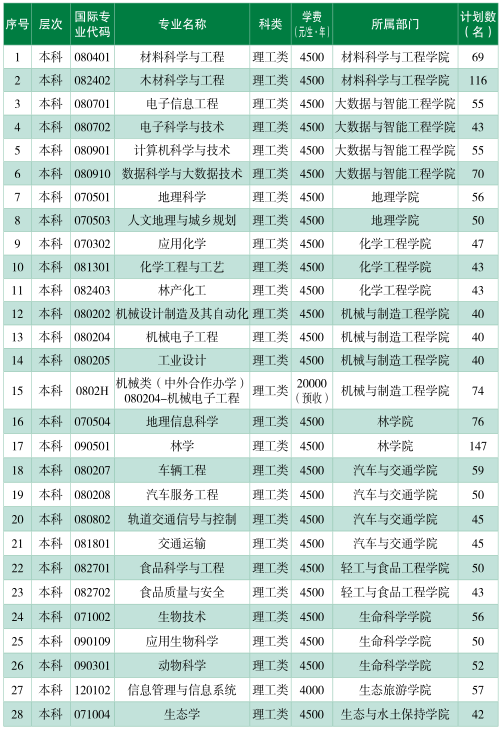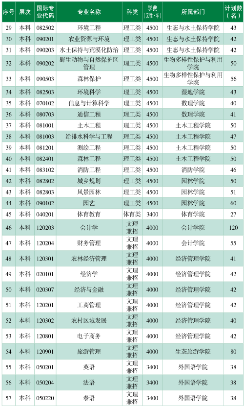 西南林業(yè)大學(xué)2024年普通本科分專業(yè)招