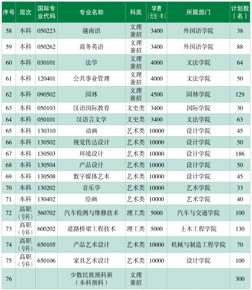 西南林業(yè)大學(xué)2022-2024年招生計(jì)劃及分