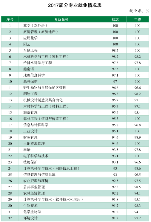 西南林業(yè)大學(xué)2017屆分專業(yè)就業(yè)情況表