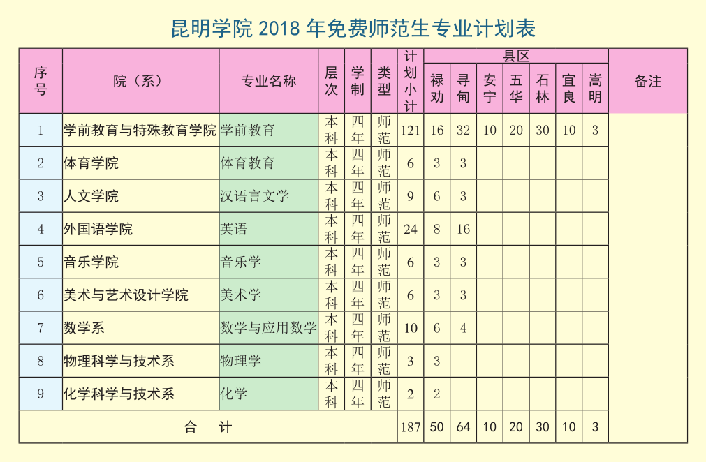 2018年昆明學院定向昆明市培養(yǎng)本科免費師范生招生簡章