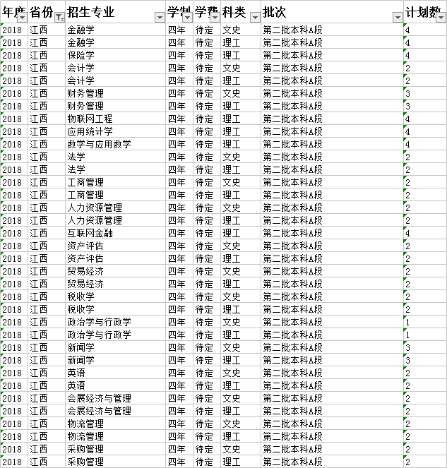 云南財(cái)經(jīng)大學(xué)2018年本科分省招生計(jì)劃表(江西)