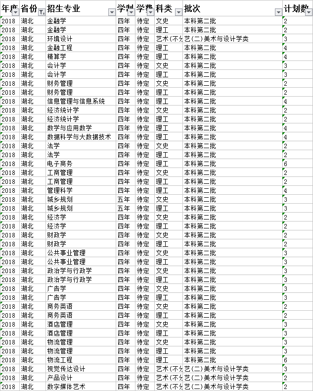 云南財(cái)經(jīng)大學(xué)2018年本科分省招生計(jì)劃表(湖北)