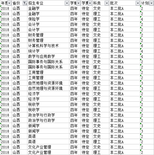 云南財經(jīng)大學2018年本科分省招生計劃表(山西?。?/h1>