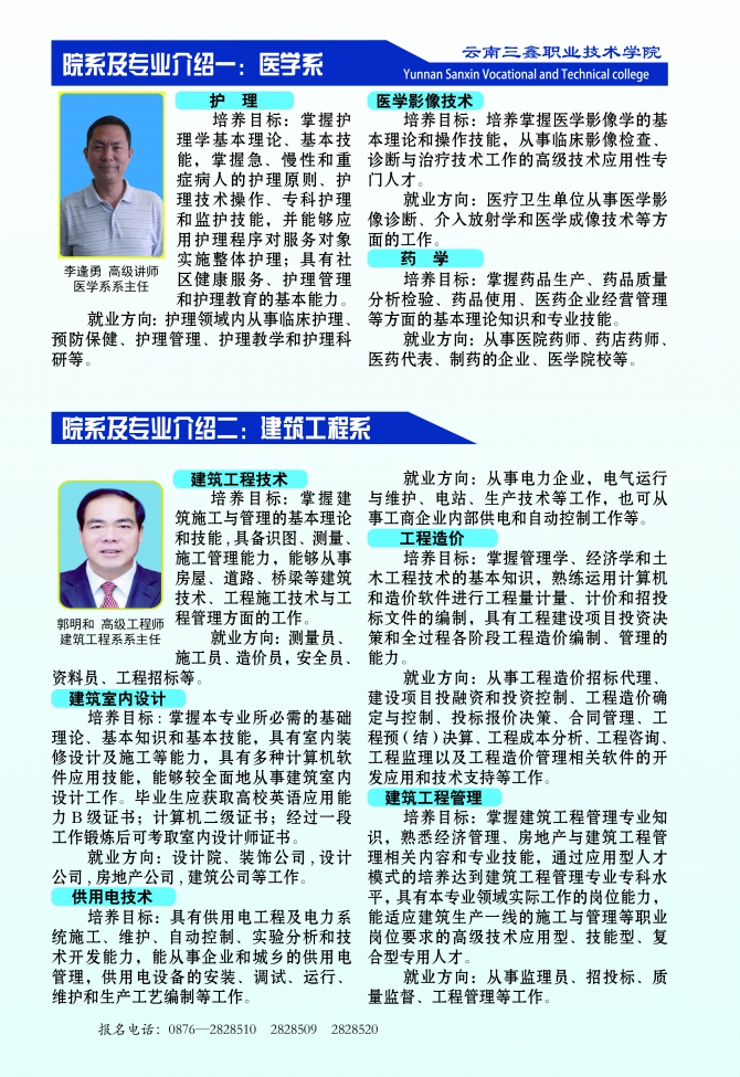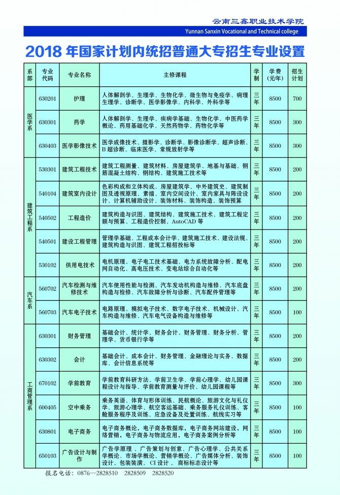 云南三鑫職業(yè)技術(shù)學(xué)院2018年三年制大專招生專業(yè)設(shè)置