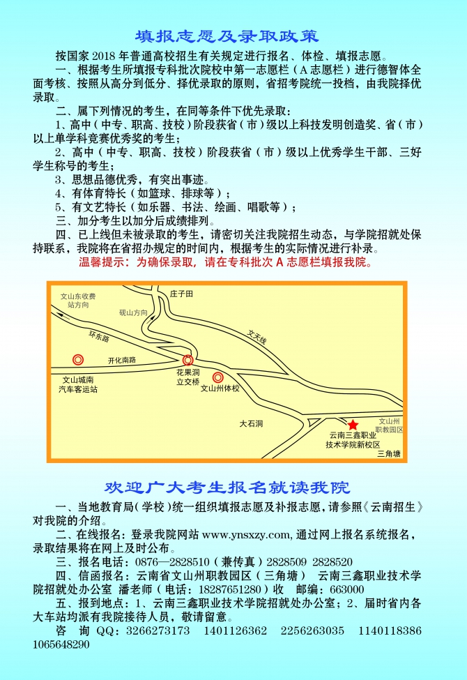 云南三鑫職業(yè)技術(shù)學(xué)院2018年招生章程