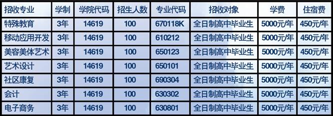學(xué)院堅(jiān)持規(guī)模、結(jié)構(gòu)、質(zhì)量、效益協(xié)調(diào)發(fā)展的原則,辦學(xué)4年后全日制在校生規(guī)模達(dá)2000人。建院初期擬設(shè)3系2部,2018年度開(kāi)辦適合學(xué)院發(fā)展,且已具備實(shí)驗(yàn)實(shí)訓(xùn)和師資隊(duì)伍等辦學(xué)條件的7個(gè)專業(yè)為:特殊教育、移動(dòng)應(yīng)用開(kāi)發(fā)、美容美體藝術(shù)、藝術(shù)設(shè)計(jì)、社區(qū)康復(fù)、會(huì)計(jì)、電子商務(wù)。