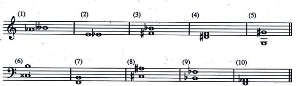 36.將下列音程轉(zhuǎn)位,并標(biāo)出原有音程和轉(zhuǎn)位后音程的名稱。