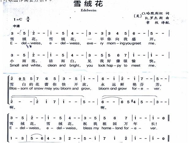 3.結(jié)合學(xué)生特點(diǎn),請為歌曲《雪絨花》設(shè)計(jì)教學(xué)目標(biāo)(三維目標(biāo))確定教學(xué)重點(diǎn)、難點(diǎn),并對歌曲作簡要分析。