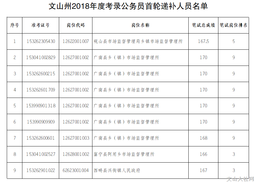 2018年6月26日,文山州2018年度考錄公務(wù)員資格復(fù)審工作已結(jié)束,現(xiàn)將資格復(fù)審不合格人員名單和首輪遞補(bǔ)人員名單公布,并將資格復(fù)審相關(guān)事宜通知如下: