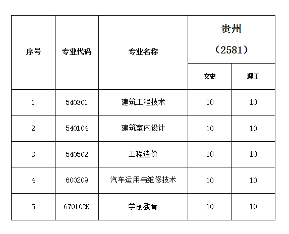 云南城市建設(shè)職業(yè)學(xué)院2018年高職(專科)貴州分專業(yè)計(jì)劃表