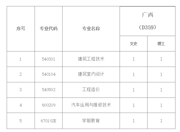 云南城市建設(shè)職業(yè)學(xué)院2018年高職(專科)廣西分專業(yè)計(jì)劃表