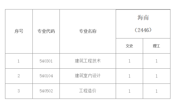 云南城市建設職業(yè)學院2018年高職(專科)海南分專業(yè)計劃表 填報志愿代碼2446