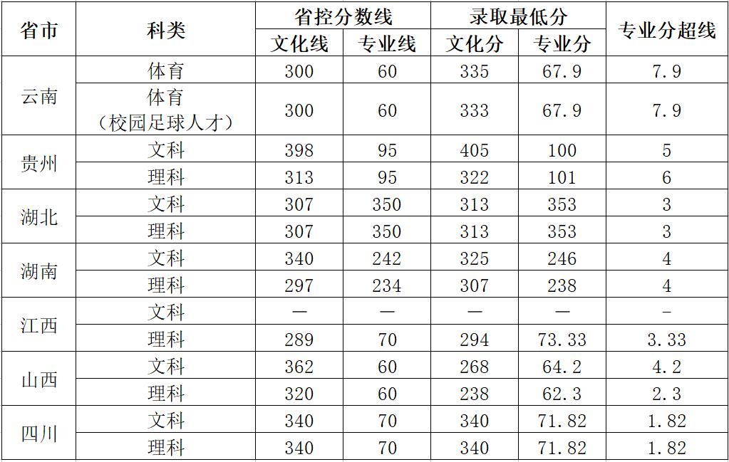 云南師范大學商學院2015-2017年體育類分省錄取最低分