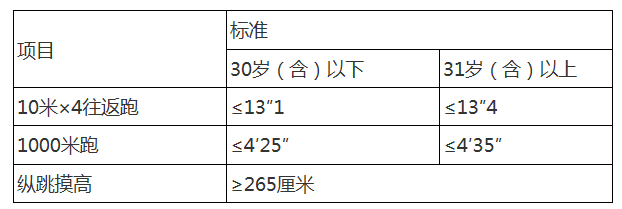 體能測(cè)試時(shí)間及地點(diǎn)另行通知,體能測(cè)試的合格標(biāo)準(zhǔn)附后。