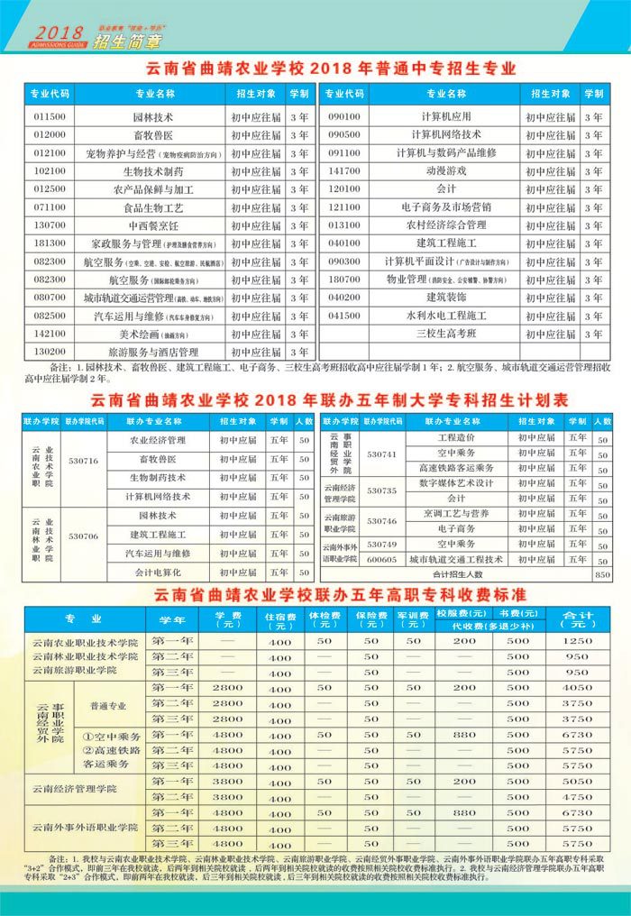 云南省曲靖農(nóng)業(yè)學(xué)校2018年招生簡章