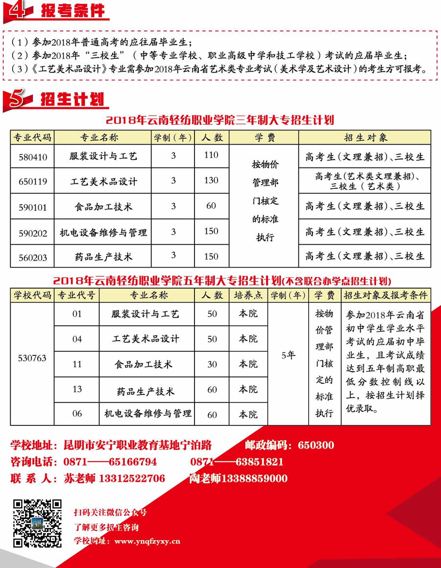 云南輕紡職業(yè)學(xué)院2018年招生簡章