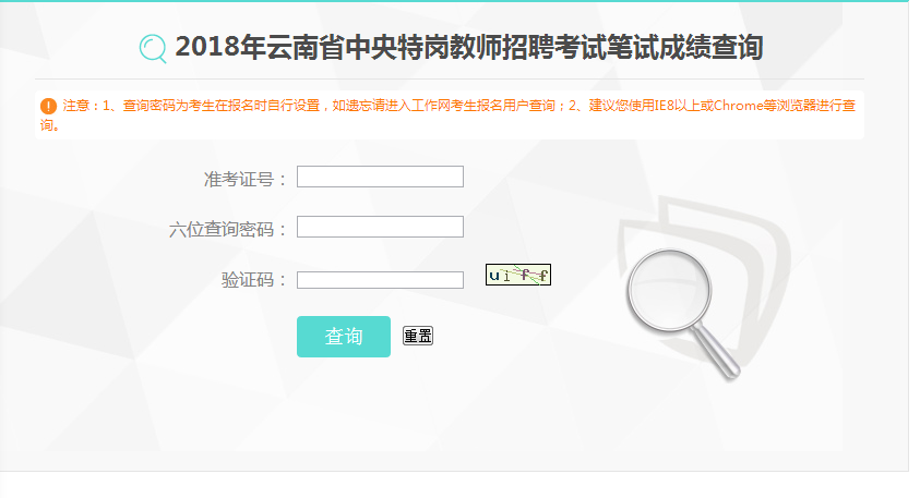 2018年云南省特崗教師筆試成績查詢?nèi)肟?/h1>