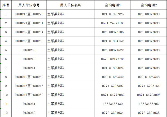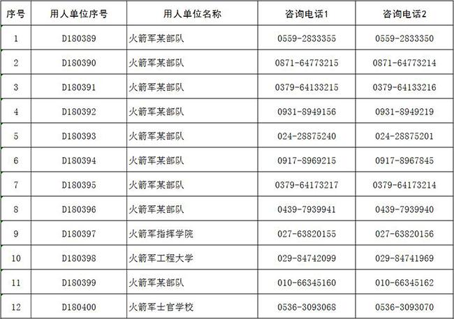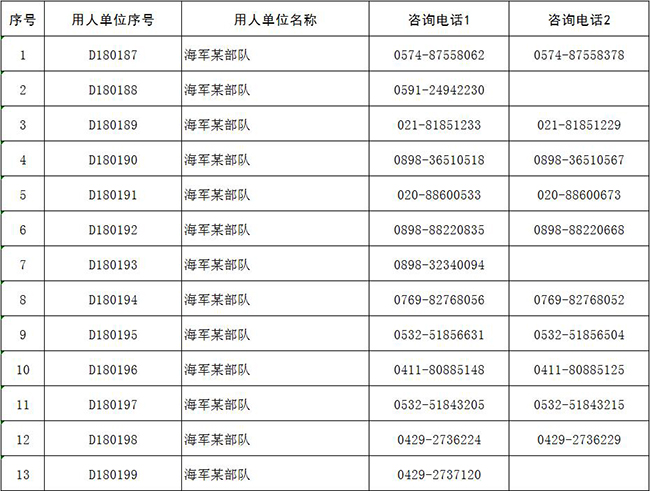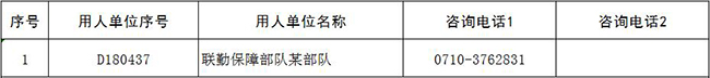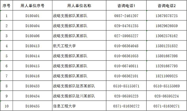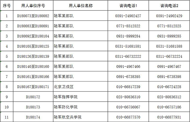 聯(lián)勤保障部隊(duì)咨詢電話:027-59561376;電子郵箱:lqbzbd@81.cn