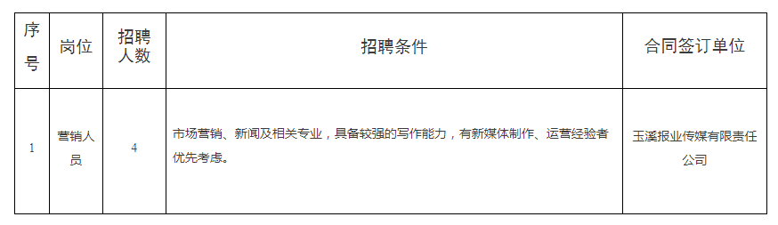 玉溪報(bào)業(yè)傳媒有限責(zé)任公司招聘公告(2)