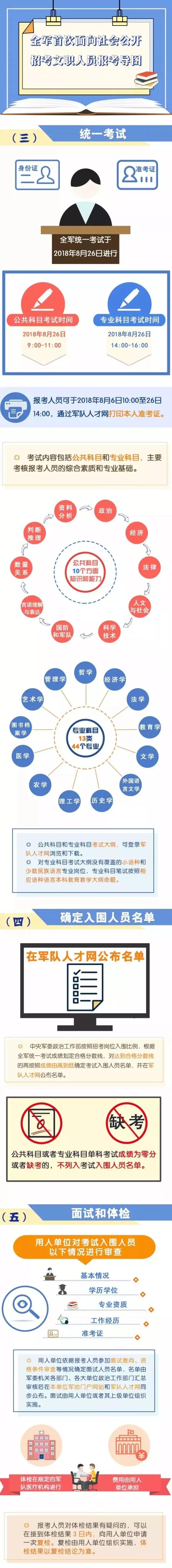 考試由全軍統(tǒng)一組織實施,在全國大中城市設(shè)置考場,主要考核綜合素質(zhì)和專業(yè)基礎(chǔ),分為公共科目和專業(yè)科目兩門。高校畢業(yè)生和社會人才可通過軍隊專業(yè)技術(shù)人才網(wǎng)(www.81rc.mil.cn)進(jìn)行報名。